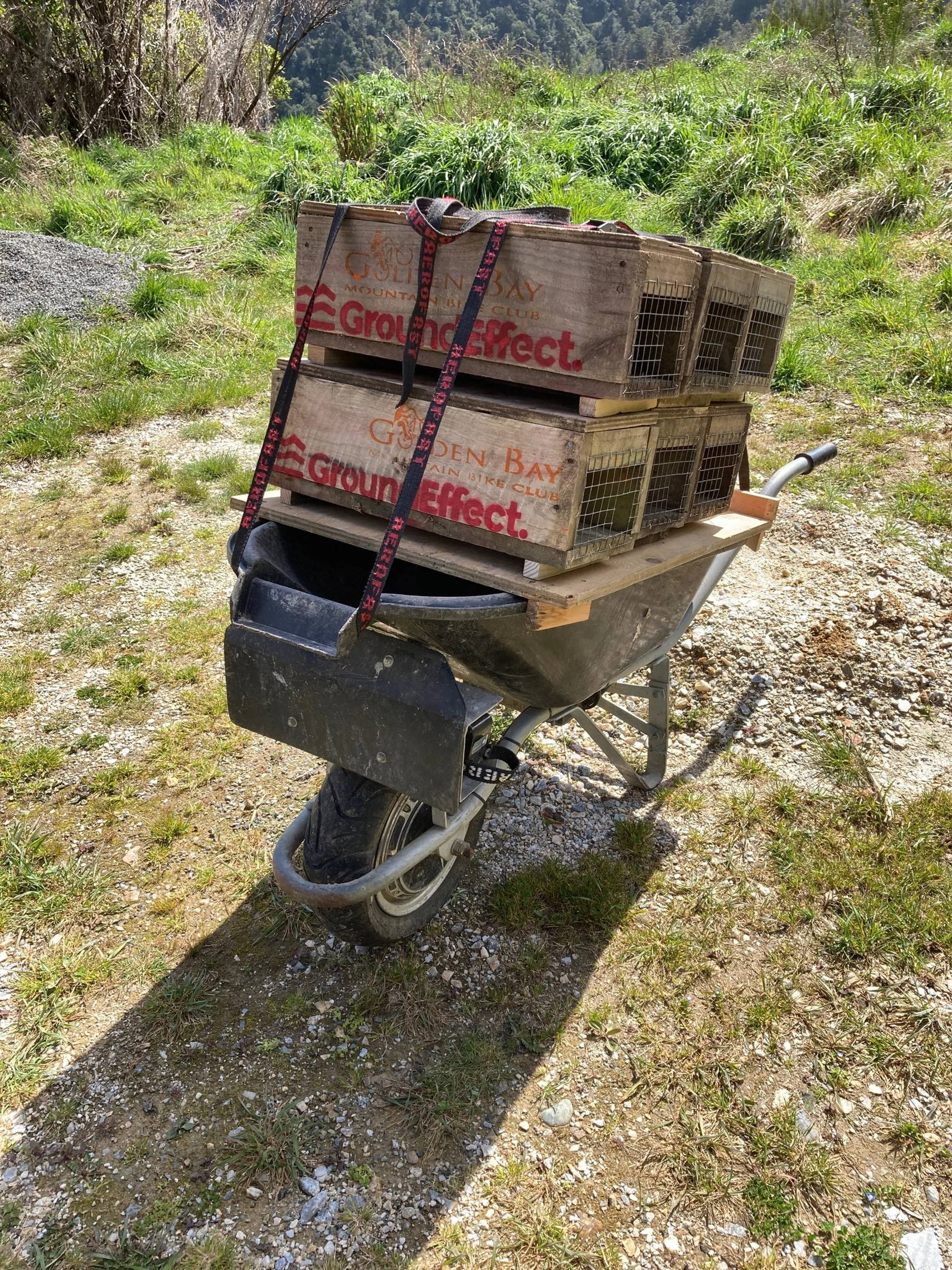 Why would a group of mountain bikers, more specifically a Mountain Bike Club, want to get into predator trapping? The answer lies with the building of the Pikikirunga Trail, a grade 3 descending trail that travels within the Takaka Scenic Reserve from the summit of the Takaka Hill to Horseshoe Bend. This is the Golden Bay Mountain Bike Club’s latest trail build project. Over the last three build seasons of the Pikikirunga Trail many club members were used as volunteers. While taking breaks volunteers observed lots of bird life on the ‘hill’. When eating lunch Kakaruwai (South Island Robin) would come close looking for crumbs, Tui and Korimako (Bellbird) would sing and the ever-present cheeky Weka was always looking to steal a stray work glove or un-guarded lunch. Once the trail was built and open the club used trail cameras initially to keep track of the amount of use the trail was getting. Unwelcome pests were observed on the cameras, including possums, feral cats, deer, rats, and mice. In the current economic climate DOC are not in a financial position to do a lot of pest and weed control in the Takaka Hill Scenic Reserve. The club thought it would be a good idea to lend a hand with pest control in the reserve to give the resident birds a ‘fair go’. As rightly observed in the beginning, we are a mountain bike club more focused on riding our bikes and we realised we needed some help with this project. We teamed with the Takaka Hill Biodiversity Group Trust (TGBDGT) who have carried out predator control on the Takaka Hill for some time now. TGBDGT would offer their expertise with management of the project which ensures longevity of pest management for many years to come. We, the mountain bike club, would supply resources such as traps and volunteer labour for servicing the traps on a monthly basis. Funding a trapping project is not the usual criteria for the Ground Effect Slush Fund. The club has plenty of Trail Building tools at the moment and we thought it was worth a phone call to the good people at Ground Effect to see what they thought about our trapping project. Happily, they thought it was a really good idea too and hence the idea was about to become reality with their help. The next challenge for the club was to source some traps. Different options were considered but in the end, another great Golden Bay organisation came to the party in the form of East Mohua Trapping Collective. They had a bunch of “pre-loved" traps that were left over from another project. Club members, John, Frazer and Karen worked for several hours to recondition the traps to make them as good as new.