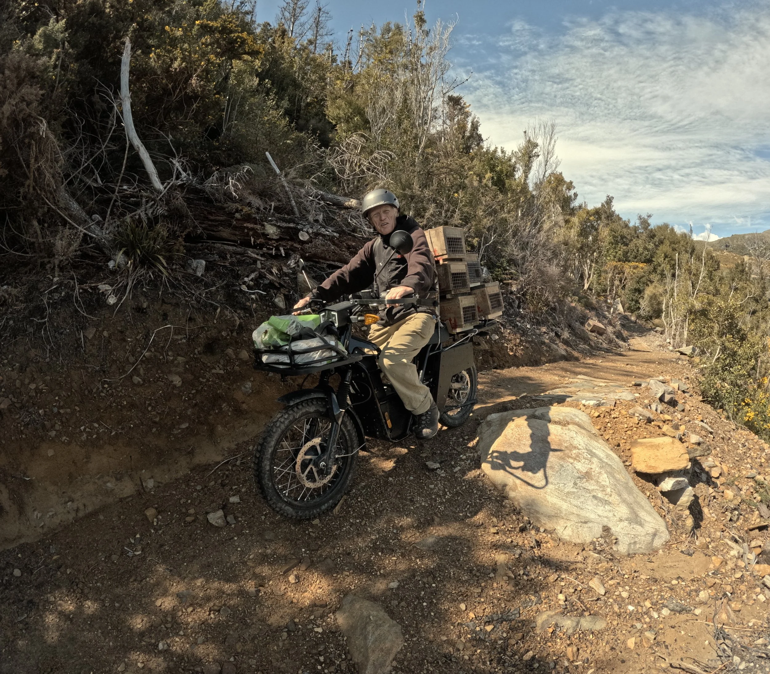 Finally, in the last weekend of September, the traps were distributed along the trail at a distance of 100m apart. The work was made easy by the fact that we were working on a mountain bike trail which allowed us to use the club's electric wheelbarrow and John's electric motorbike. After only a couple of hours all the traps had been placed and set up. The plan now is to lure pesky pests into the trap by pre-feeding mayonnaise for a month before putting the traps into action resulting, we hope, with maximum kills.