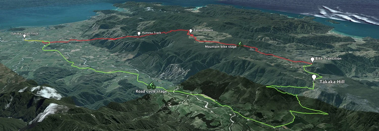 Starting from the Junction Green in Takaka, riders will head south along SH 60 for the first 22km up the Takaka Valley to Upper Takaka where the hill climb starts in earnest. Don't underestimate this part of the ride. The valley rises 100 metres over the course of 22km, and southerly head winds can make it a serious uphill challenge in itself. Be aware of two single lane bridges at 10km and 13km, leading to the sprint at Upper Takaka. From Upper Takaka you will have a climb of 10km gaining another 690 metres, making this side of Takaka Hill the biggest raced road climb in New Zealand. First to the summit of the Takaka hill wins King Of the Mountain! A short, fast descent takes you to the Canaan Transition.